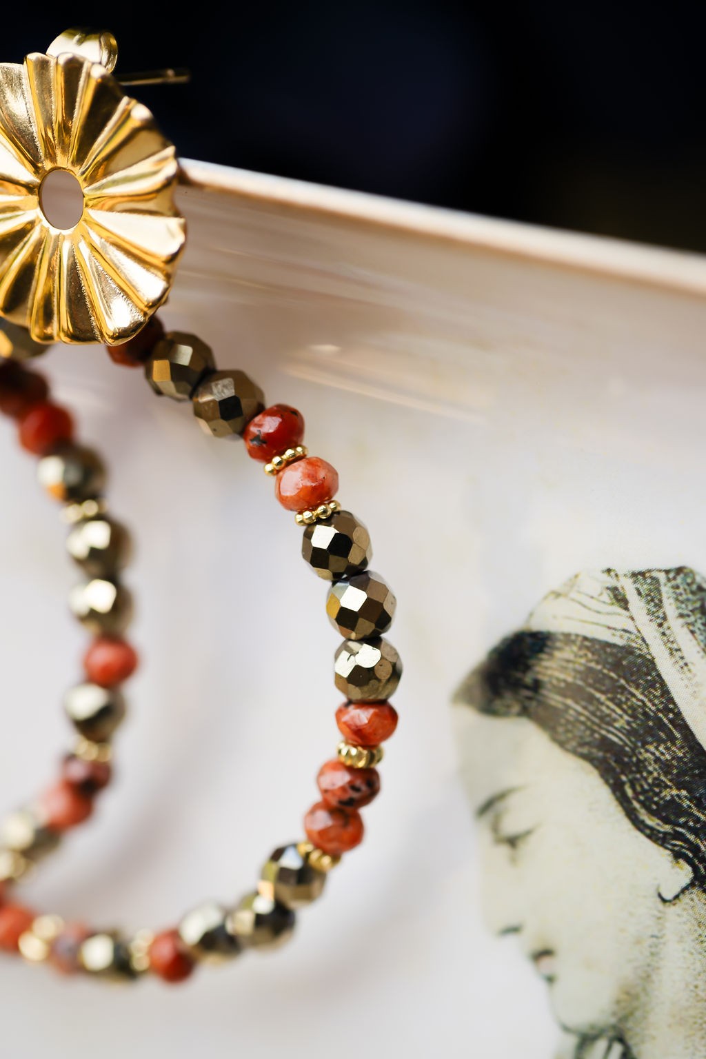 Description: Sublimes boucles en acier, cristal et pierres naturelles.